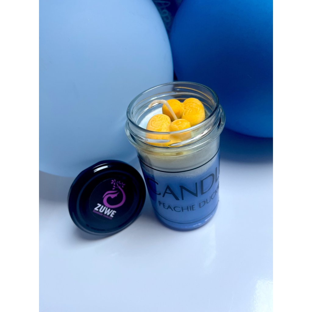 Ručně vyráběná svíčka s obsahem sojového vosku, 100% esenciálním olejem z broskví. Užíjte si příjemnou atmosféru kdekoliv v bytě nebo v domě.
